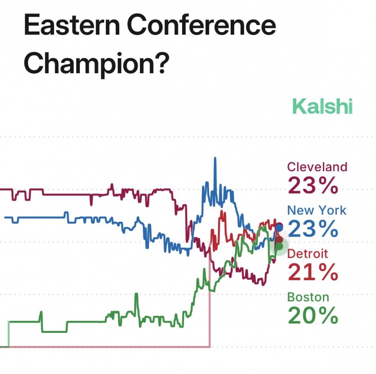 2月6日讯 今天,数据媒体Stat Defender更新了本赛季东部冠军的概率预测,骑士和尼克斯并列第一。具体如下: